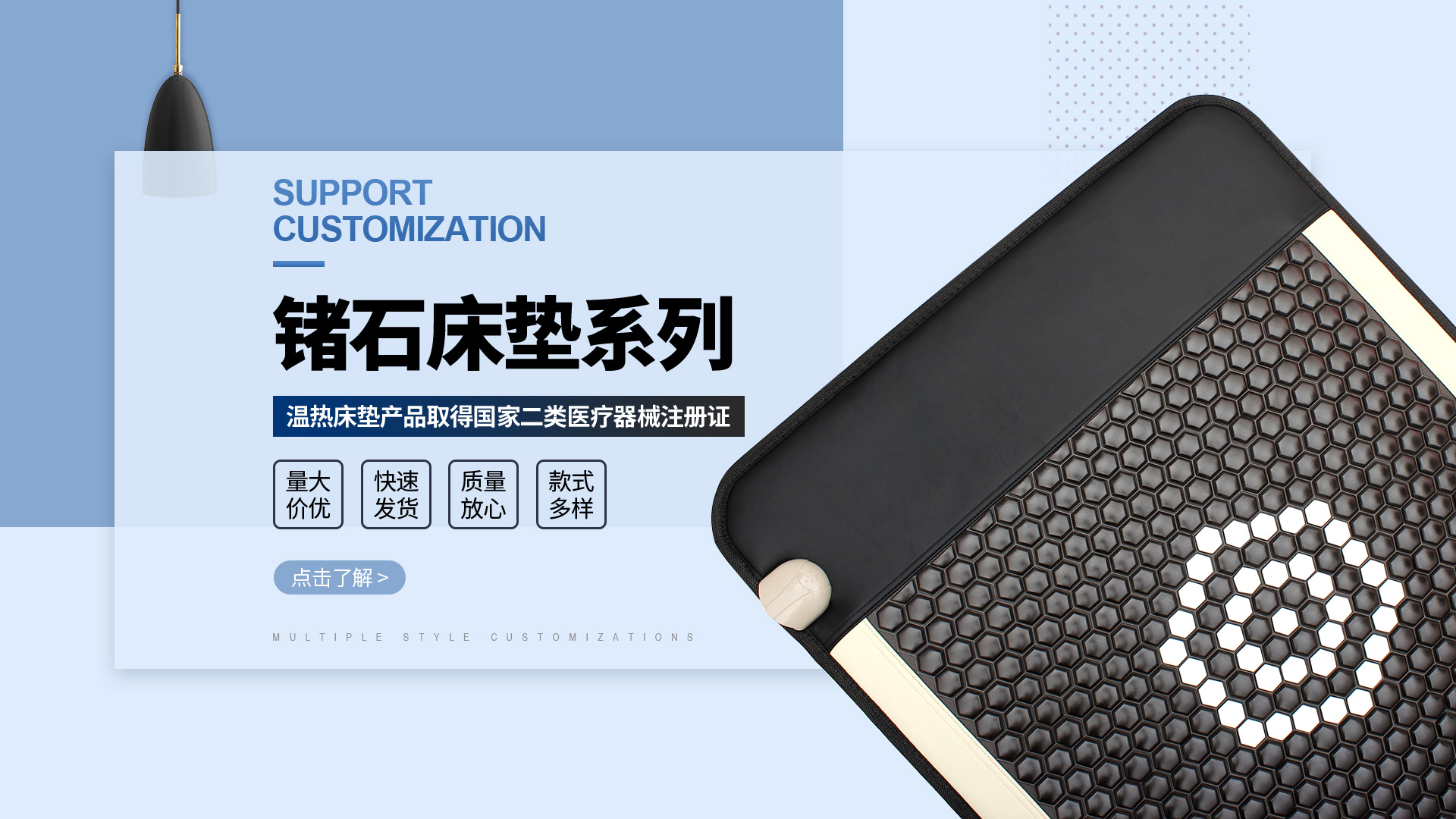 現(xiàn)主要產(chǎn)品有玉石床、溫熱玉石床墊、溫熱鍺石床墊、溫熱坐墊、溫熱靠背及多種玉石保健制品等